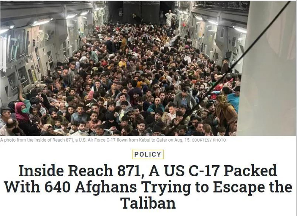 美军一架C-17运输机搭乘了640名阿富汗人。(图片来源:Defense One网站截图)