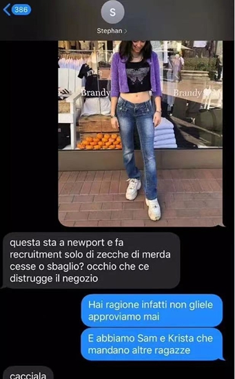 前高级副总裁Luca Rotondo爆料说:在他工作的九年中,Marsan亲自指示他解雇了数百名员工。他还展示了一份2019年他与Marsan的聊天记录:在Marsan收到一张黑发女性员工的照片时,他的回复是:雇佣这些垃圾会毁掉这家店,赶紧把她赶出去。