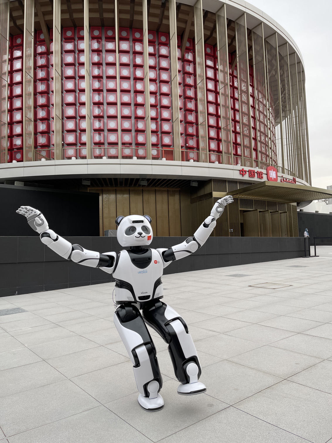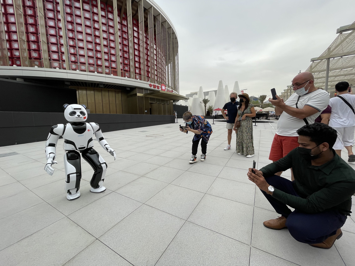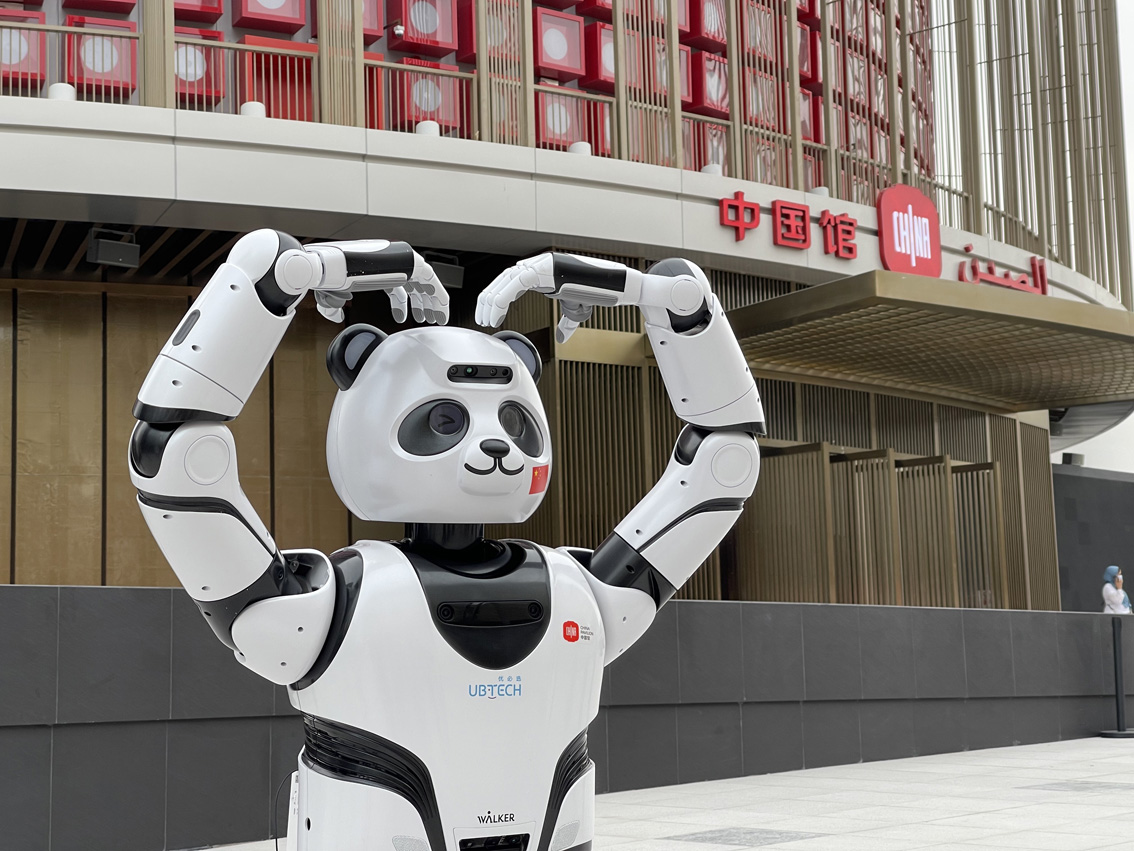10月4日,熊猫机器人在迪拜世博会中国馆外表演。