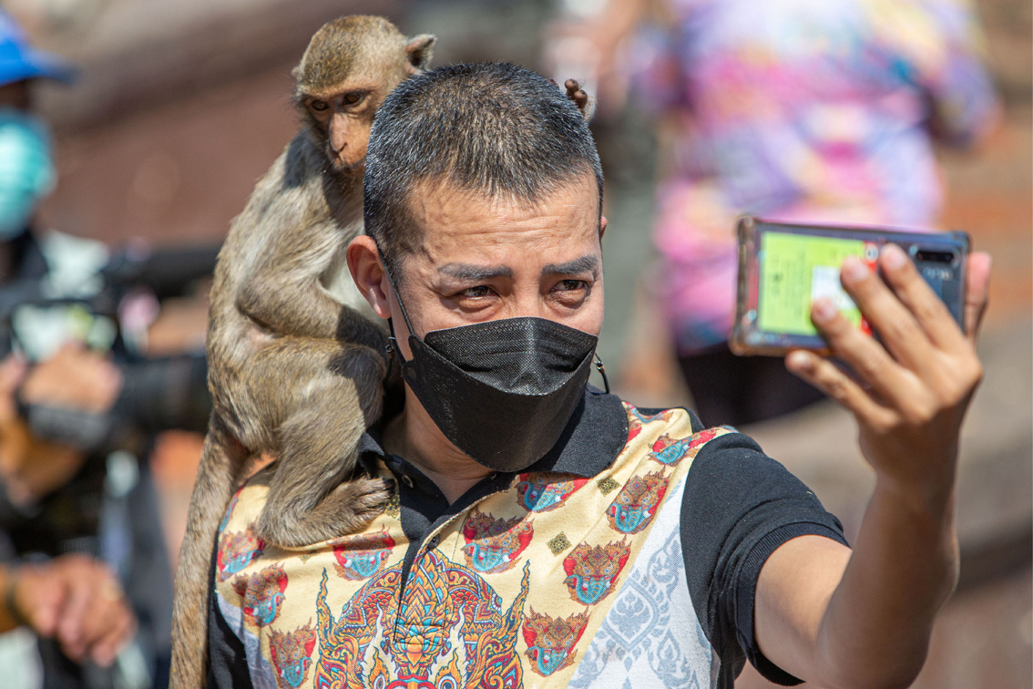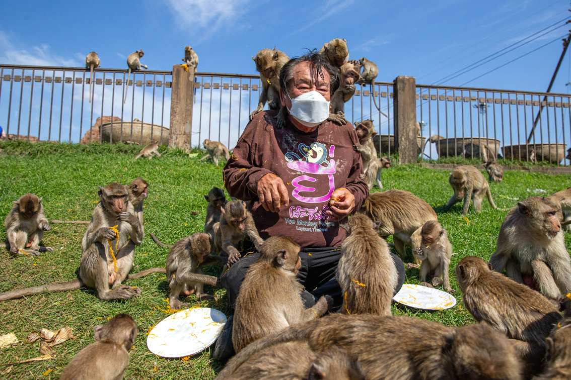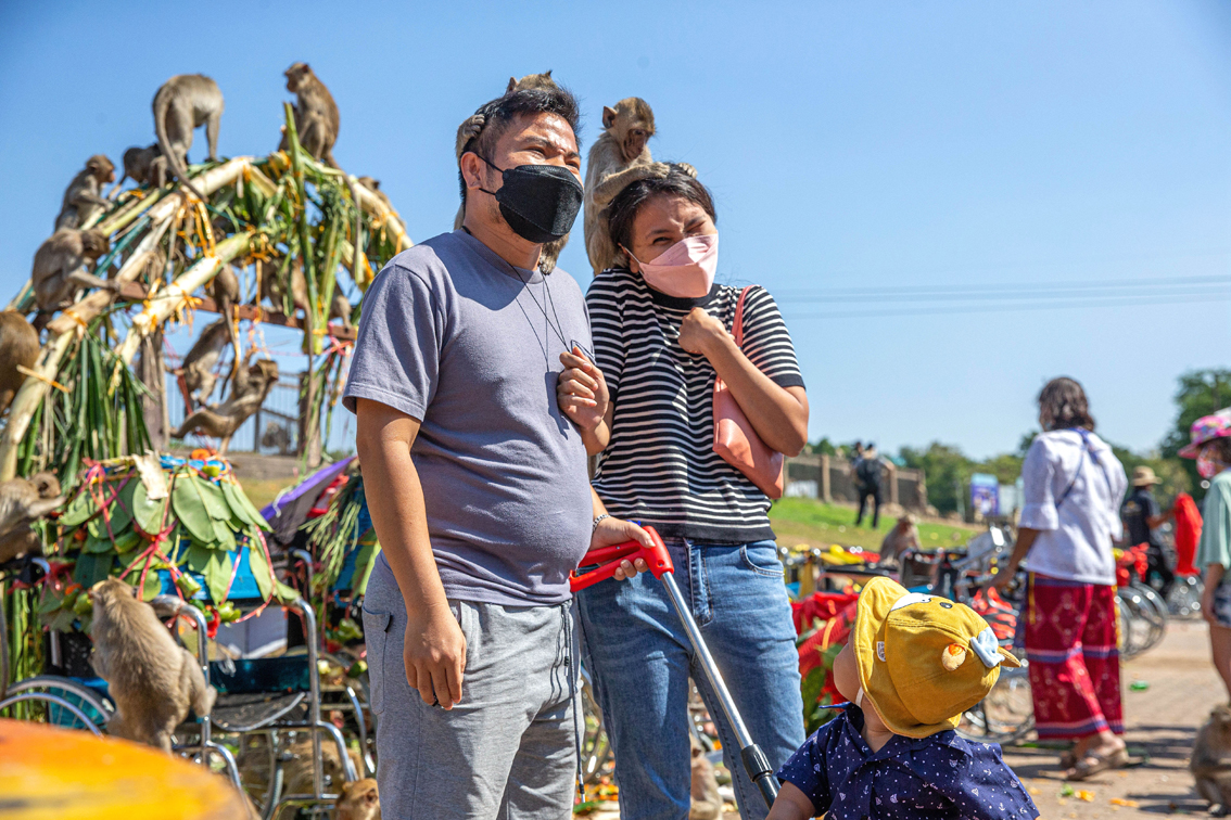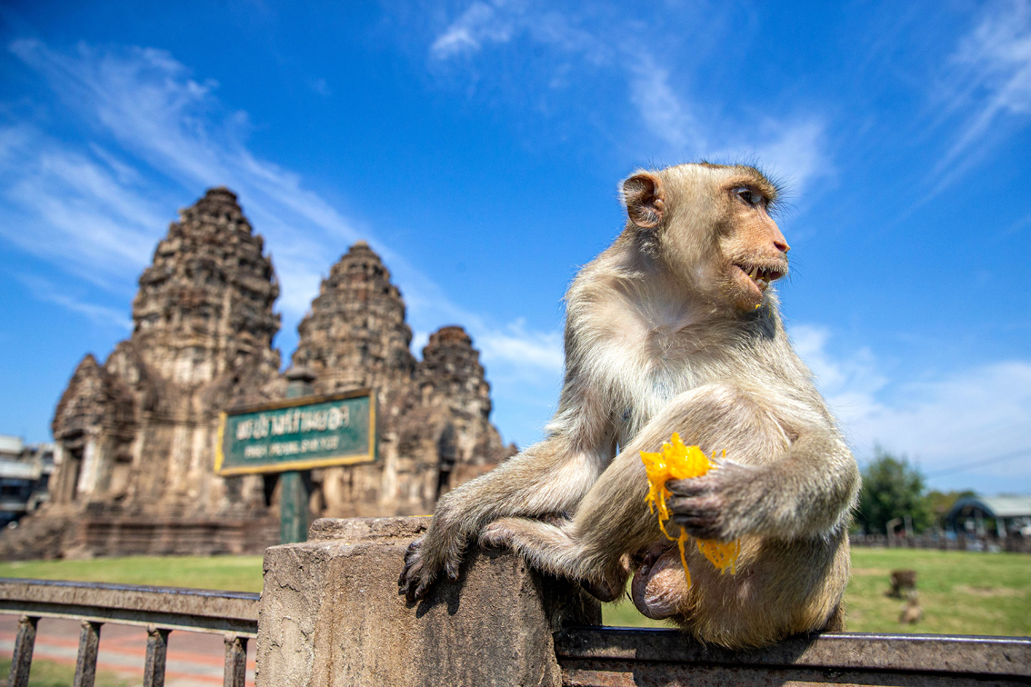 泰国华富里:“猴哥”享用自助餐