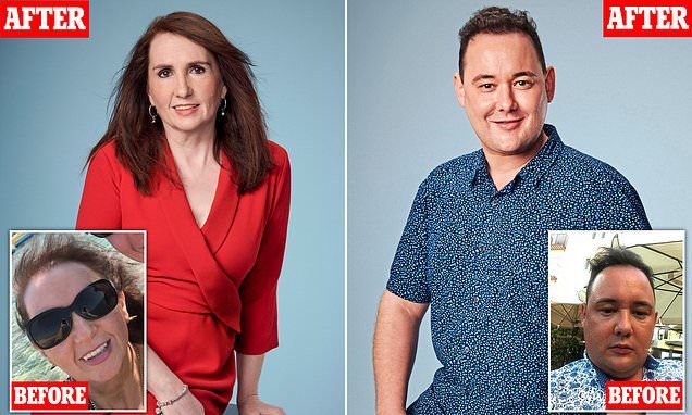 英国助理护士保罗·雷德和助理讲师娜塔莎·斯托曼接受“脂肪干细胞治疗”前后的对比。(图片来源:视频截图)