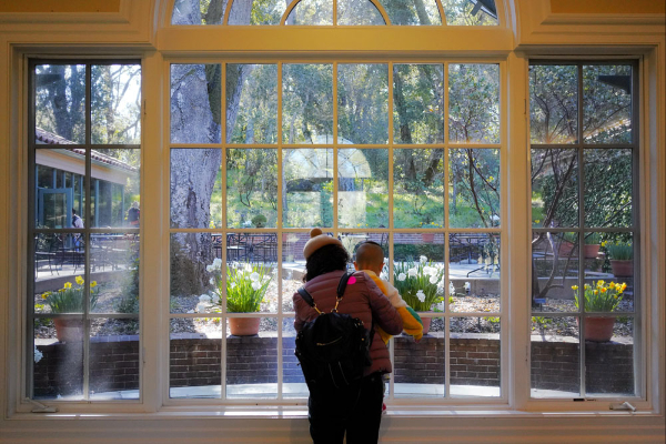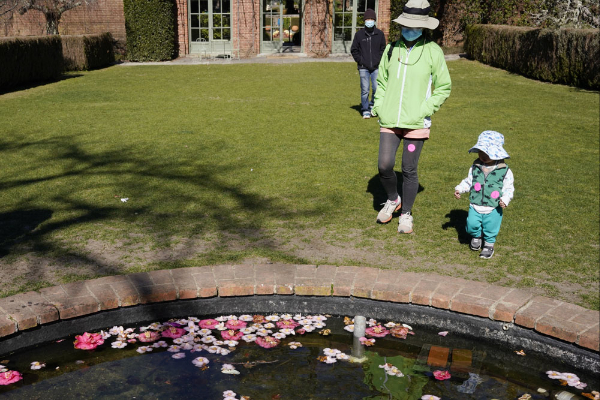 2月21日,参观者在费罗丽花园里欣赏春色。(图片来源:本文图片均自新华社)