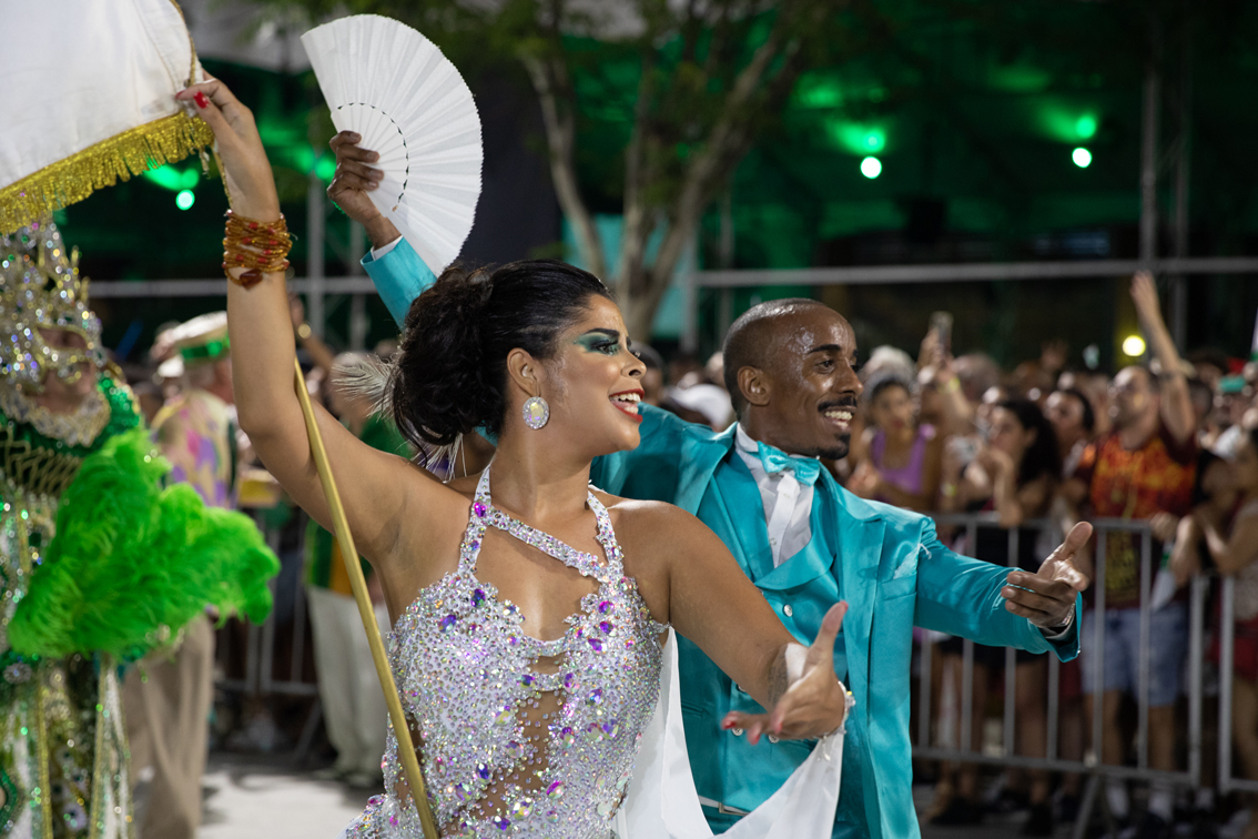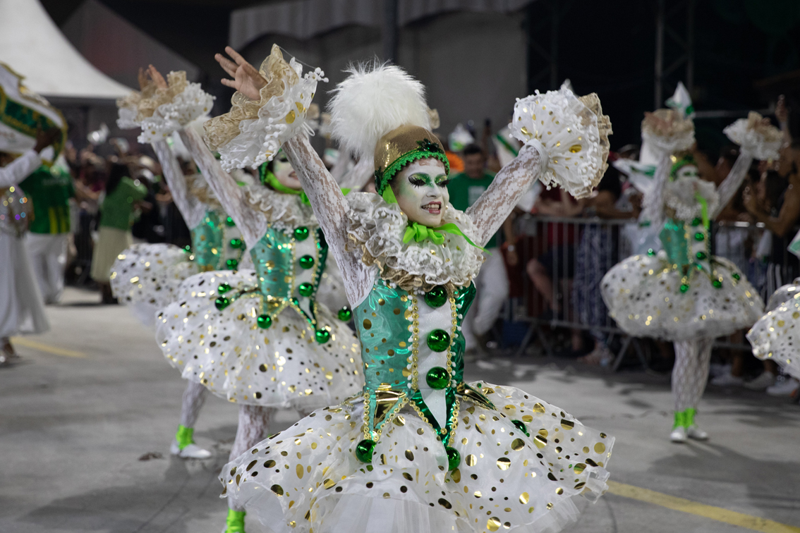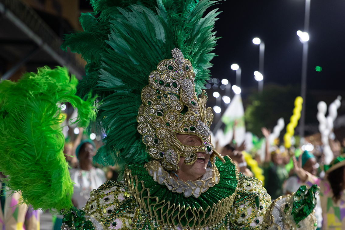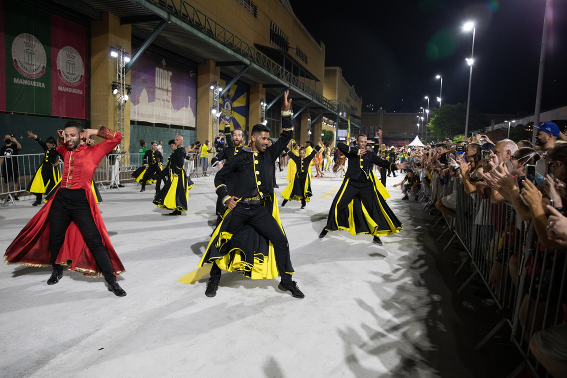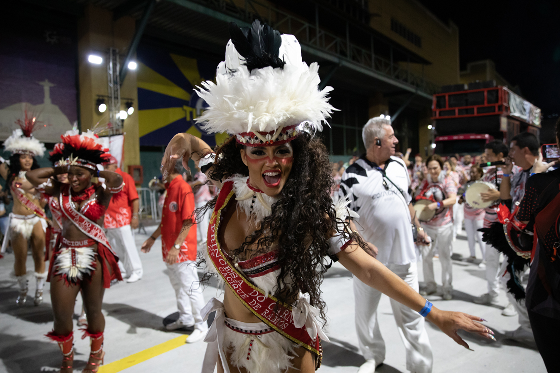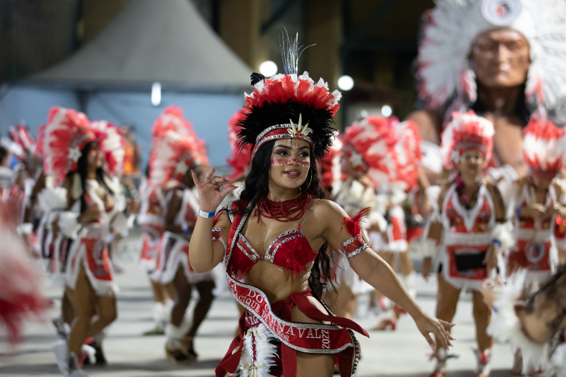 2月26日,来自巴西里约热内卢桑巴之城的12所桑巴舞特级学校举行活动,庆祝狂欢节假期到来。2022年巴西的狂欢节假期为2月26日至3月1日。