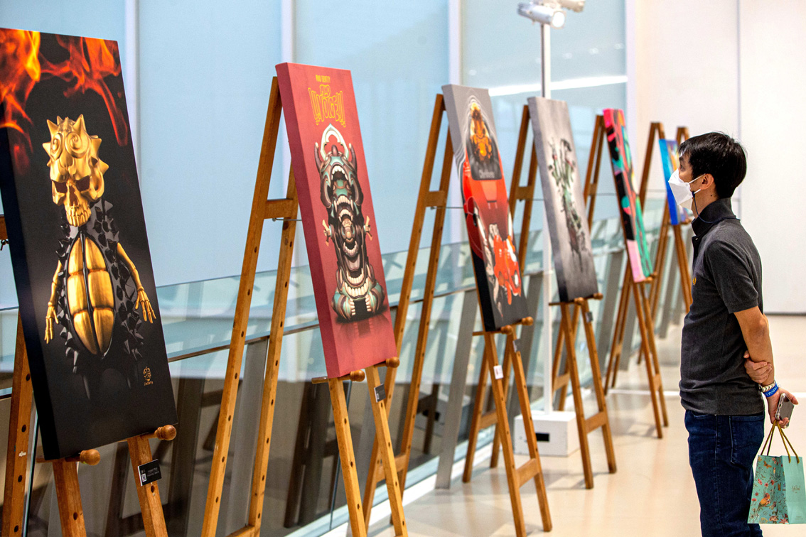2022年泰国数字艺术节共展出来自140位泰国艺术家的1400余件艺术作品,涵盖绘画、雕塑、平面设计等艺术形式,展览将持续至3月20日。