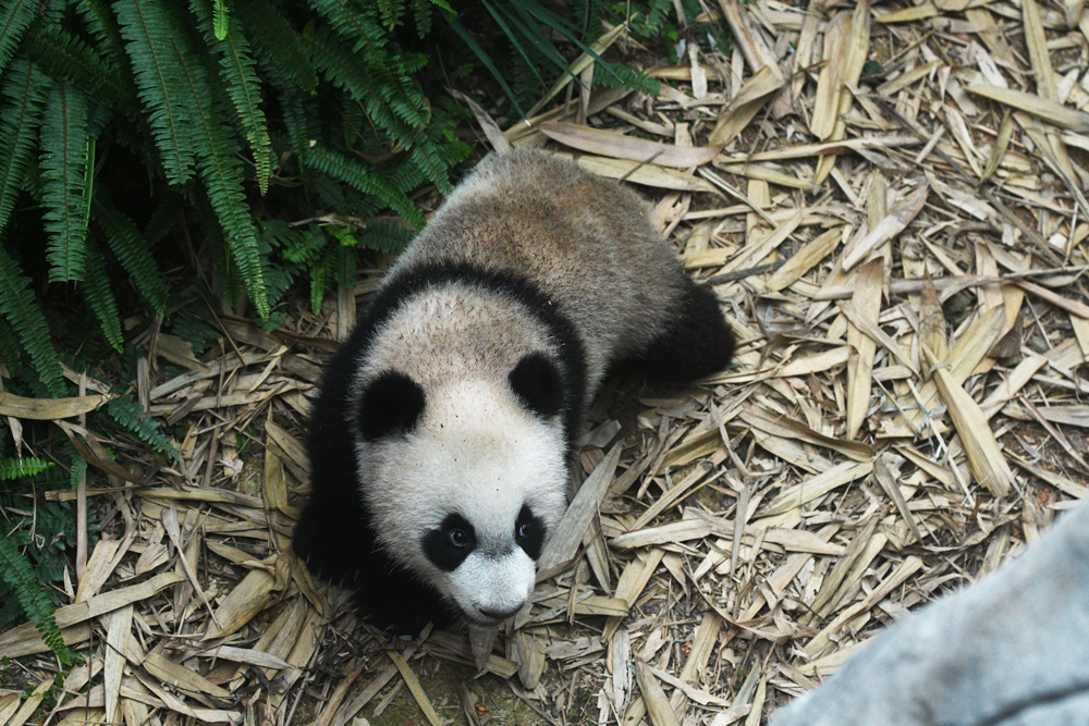 3月10日在新加坡河川生态园拍摄的大熊猫幼崽叻叻。(图片来源:本文图片均自新华社)