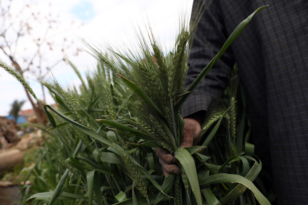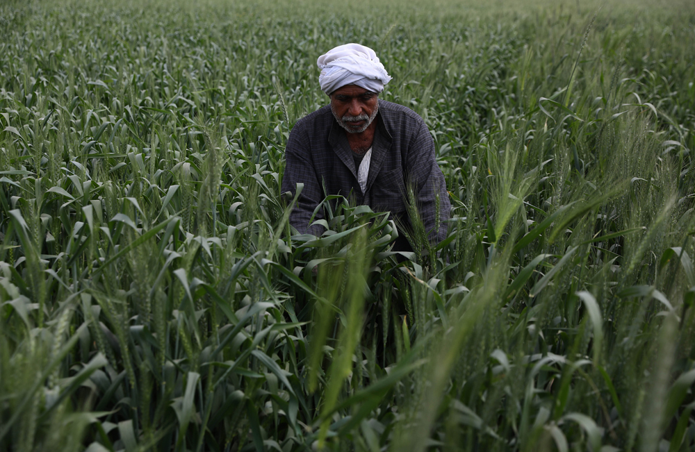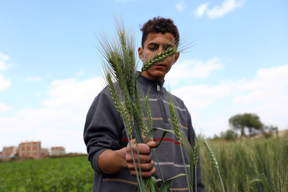 3月14日,农民在埃及盖勒尤卜省的小麦田中劳作。(图片来源:本文图片均自新华社)