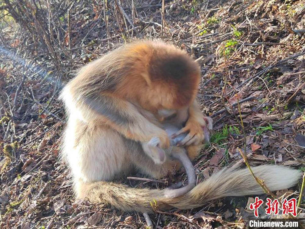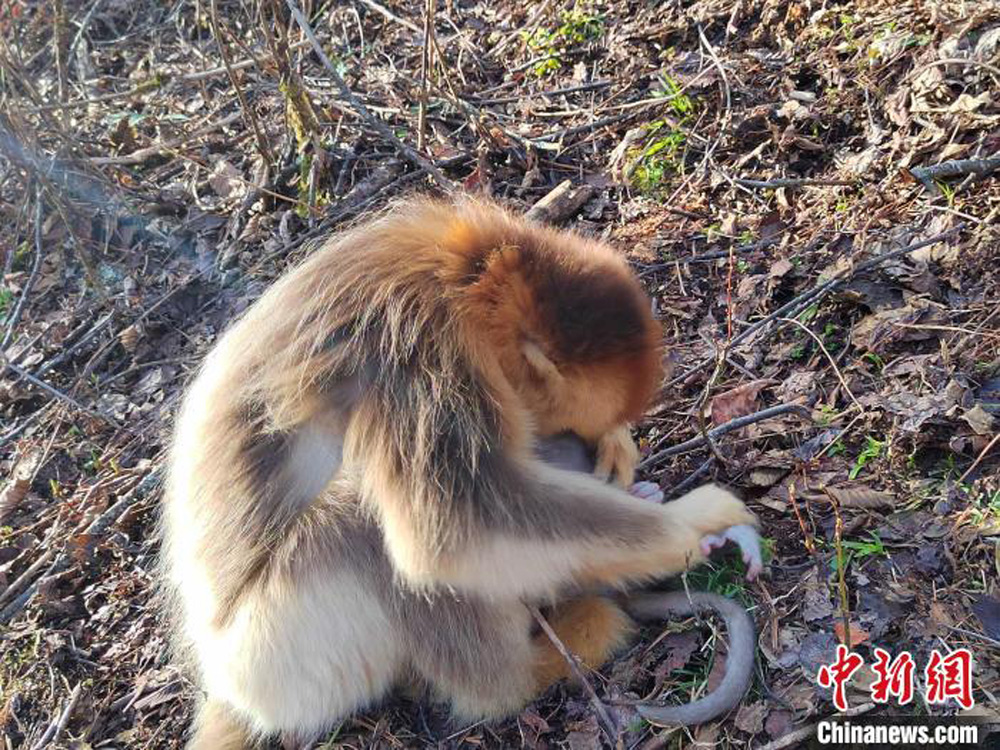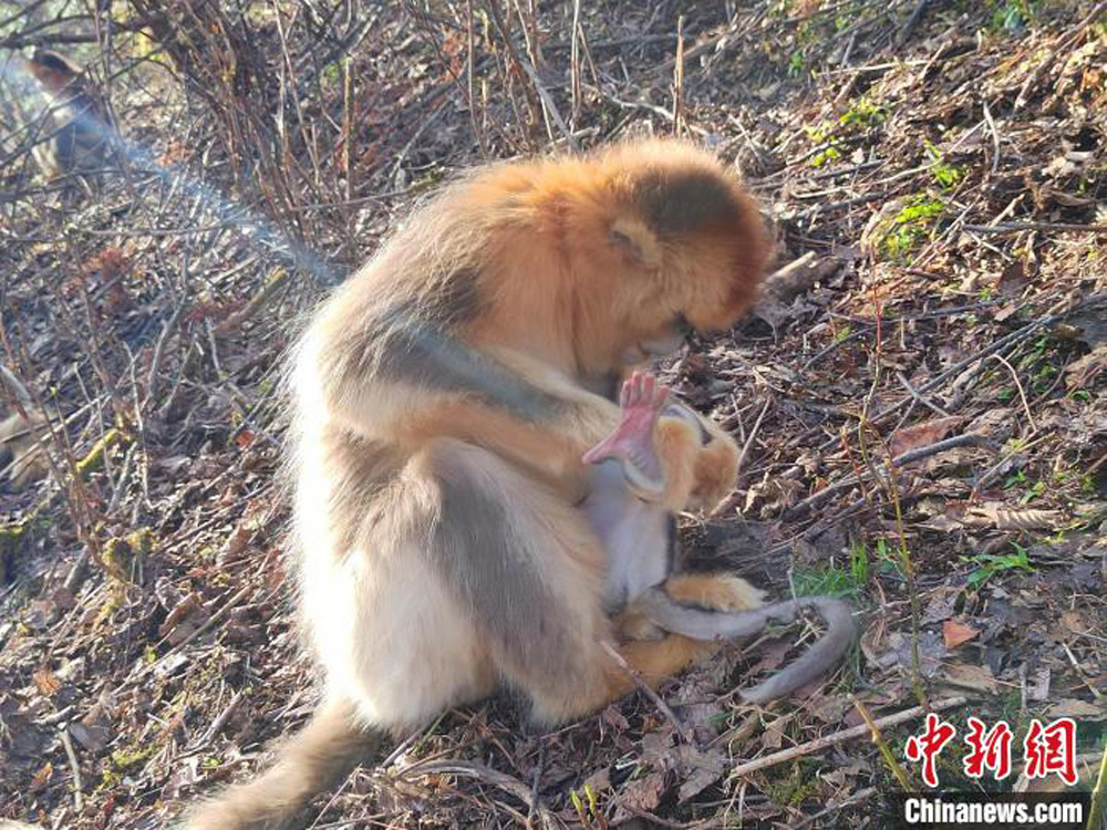 金丝猴妈妈精心照顾刚出生的猴宝宝。(图片来源:中新网)