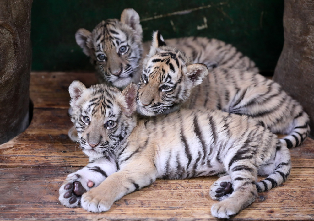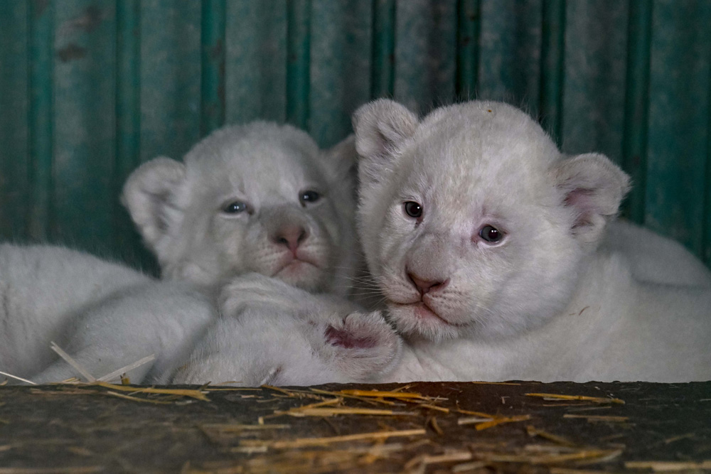 斯科普里动物园近来正在经历“婴儿潮”,多个不同物种的幼崽诞生。图为4月7日,在北马其顿斯科普里动物园,三只白狮宝宝在笼子里。(图片来源:新华社)
