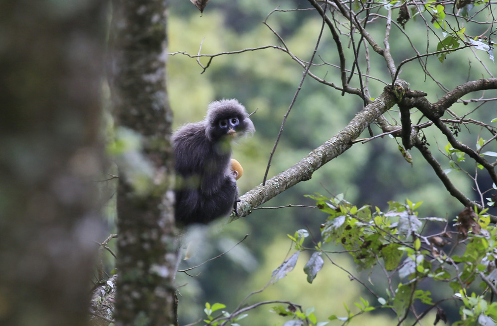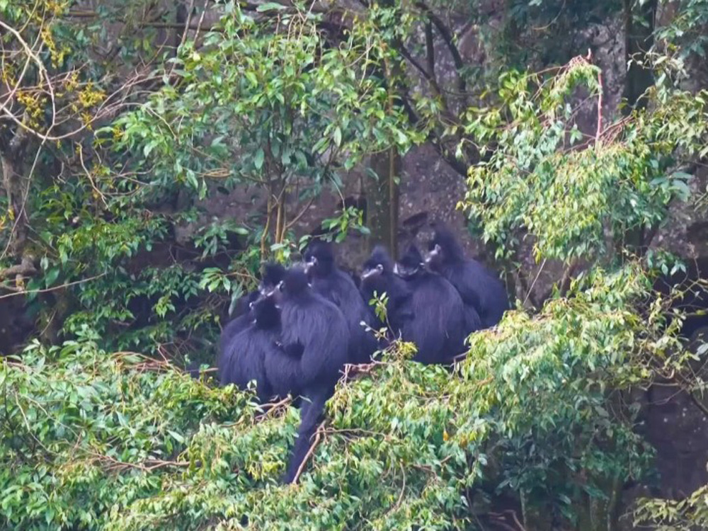 近日,重庆金佛山国家级自然保护区发现2只黑叶猴幼崽。这是继2020年春天后,金佛山再次观测到濒危黑叶猴种群自然繁育现象。(图片来源:新华社)