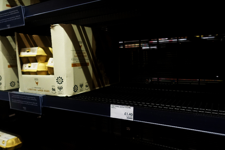 英国伦敦一家超市的鸡蛋货架上商品寥寥。