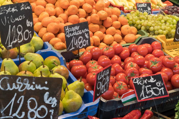在匈牙利布达佩斯一个市场拍摄的水果和蔬菜。