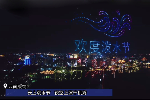 云南版纳云上泼水节,夜空上演千机秀。(图片来源:北京央视新闻客户端)