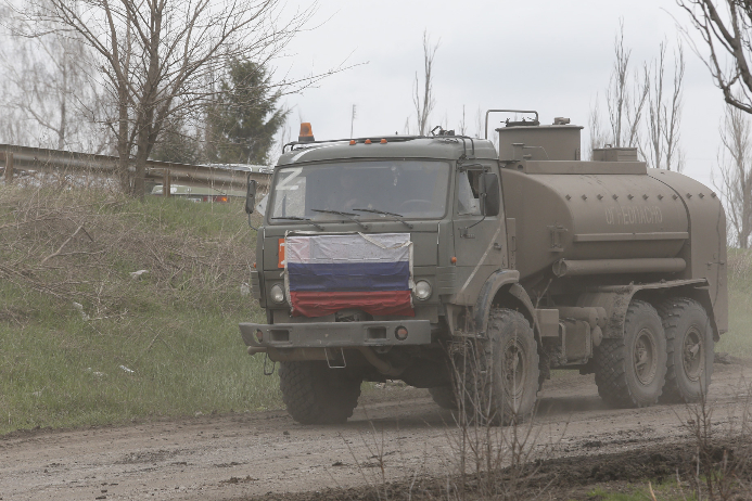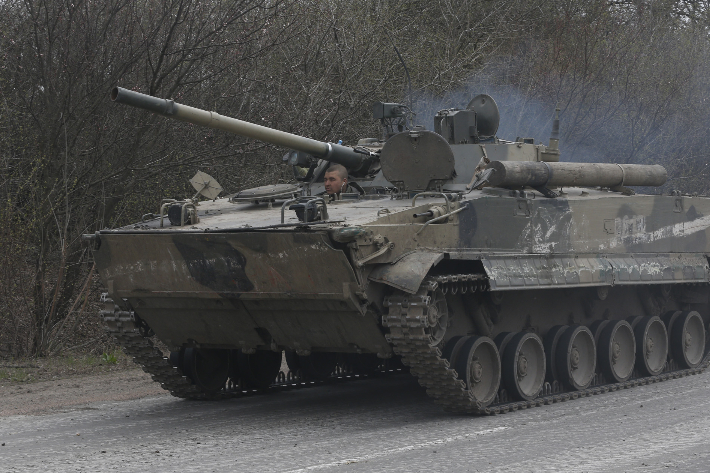 4月17日,装甲车辆从马里乌波尔附近驶过。(图片来源:本文图片均自新华社)