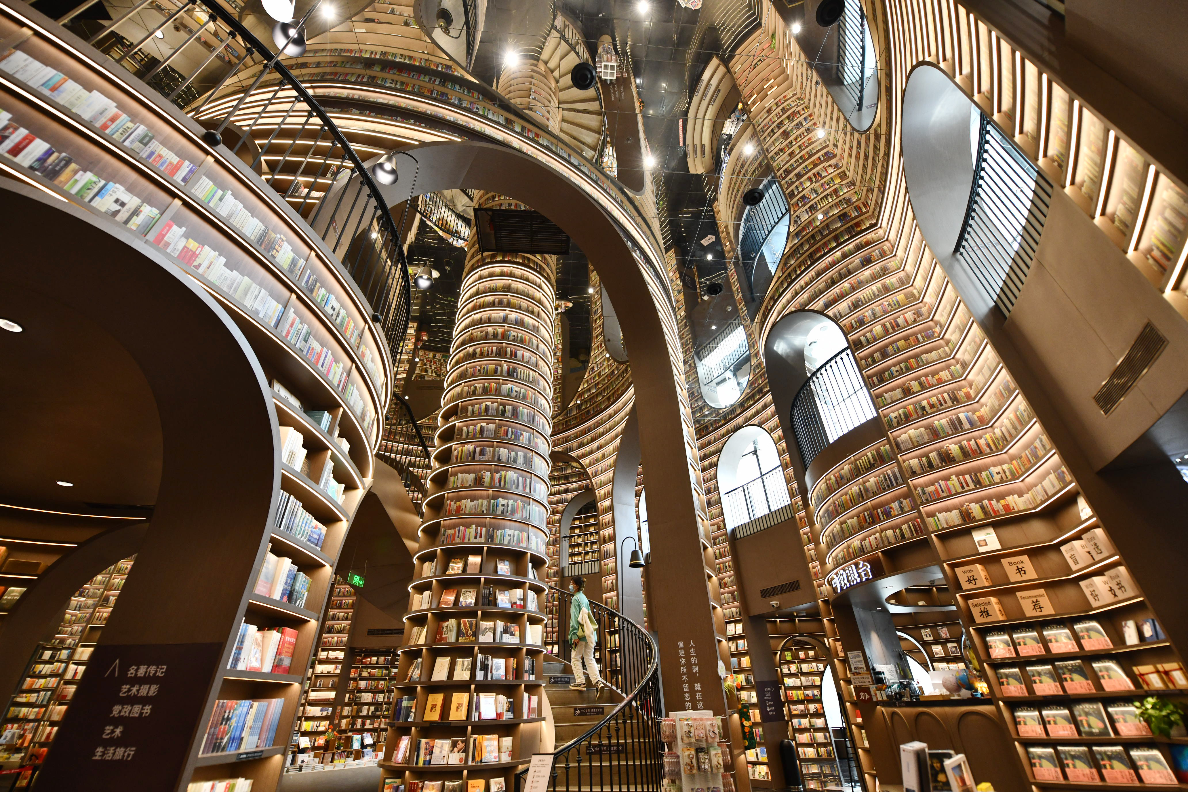3月15日,四川省都江堰市钟书阁书店因其独特的造型设计吸引民众打卡。此前,世界知名建筑网站Architizer公布的2021年的A+Awards获奖名单,都江堰钟书阁荣获专业评委奖。(图片来源:香港中通社)