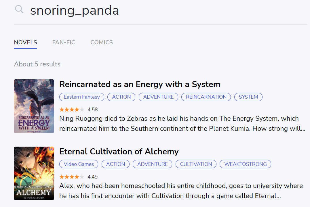 24岁的尼泊尔新人作家Snoring_Panda坦言,疫情期间,写作成了最好的消遣方式。图为该作家在起点国际(Webnovel)上的作品。(图片来源:网页截图)