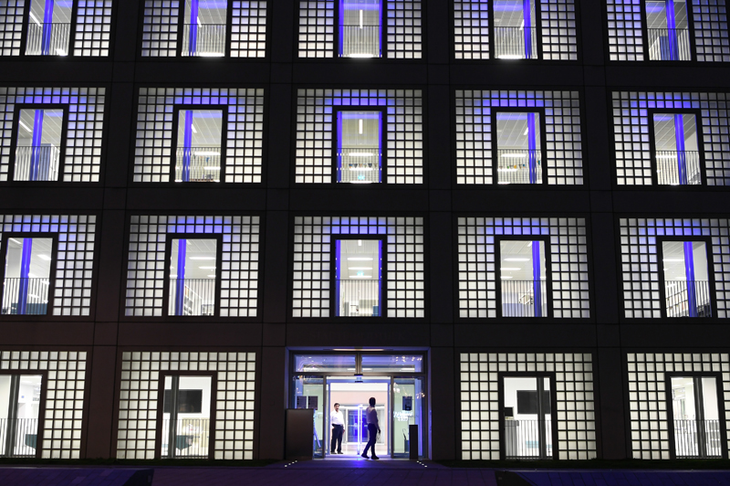 4月19日在德国斯图加特拍摄的斯图加特市立图书馆外观。