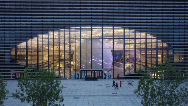 有着“滨海之眼”之称的滨海新区图书馆位于天津滨海文化中心,于2017年10月正式开馆,目前已成为天津滨海新区的文化“新地标”。“滨海之眼”的内里是图书馆中庭,中庭空间形象由“书山”和中间的球体构成。球体是“滨海之眼”的“眼球”,也是一个多功能厅,配置有环绕立体声和数字放映功能;“书山”则由34层阶梯平台构成。图为4月20日,市民从天津滨海新区图书馆外经过。