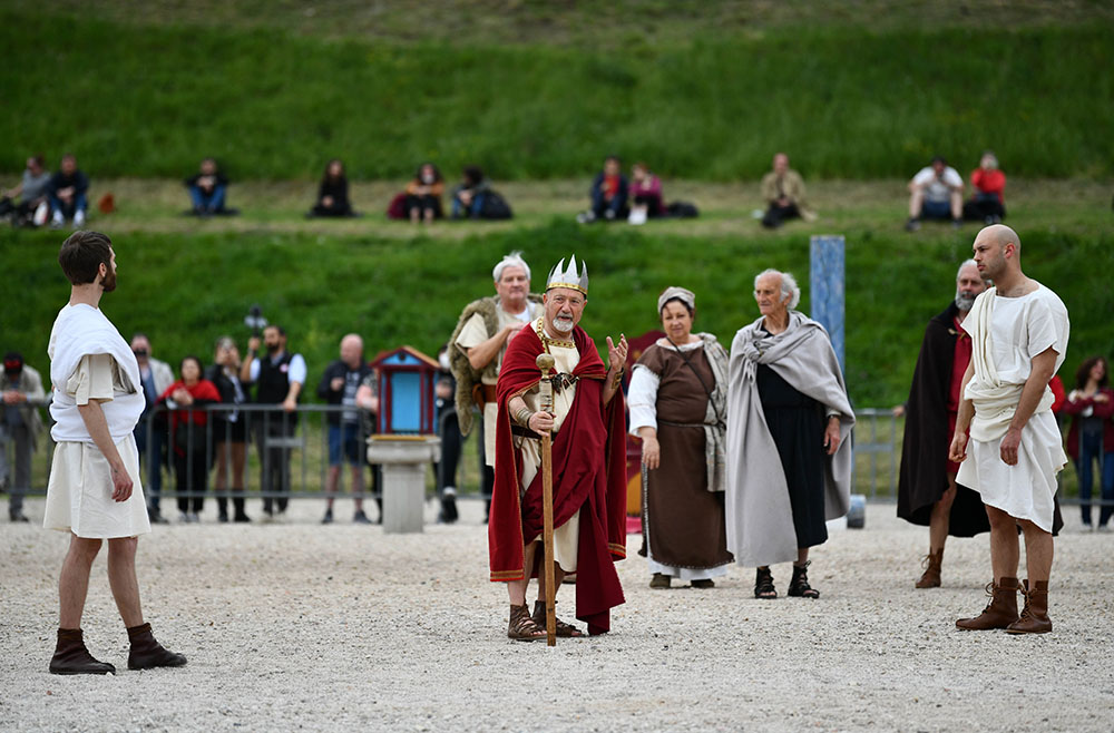 近日,人们穿戴古罗马时期服饰,参加罗马建城2775年庆祝活动。相传罗马建城日为公元前753年4月21日。