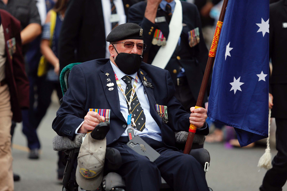 4月25日,一名男子在澳大利亚悉尼参加“澳新军团日”纪念活动。