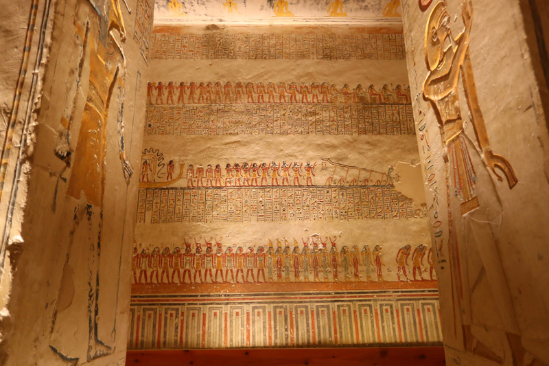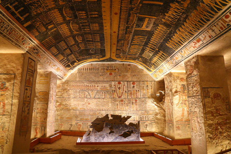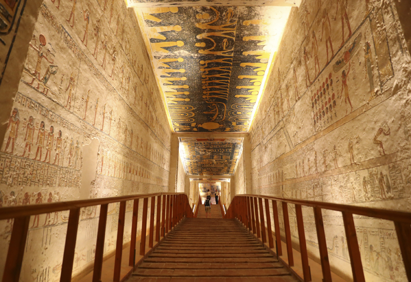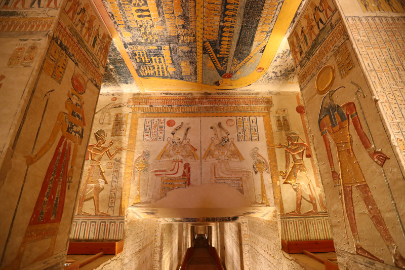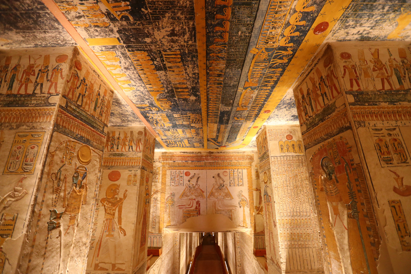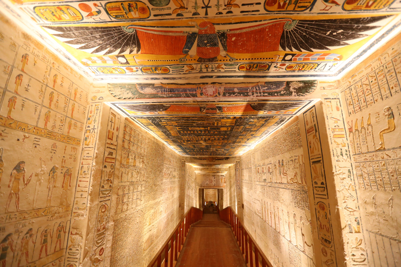 帝王谷位于埃及南部古城卢克索,是古埃及众多法老陵墓的所在地。拉美西斯六世陵墓内的浮雕、壁画等装饰色彩鲜艳依旧,是帝王谷中最漂亮、保存相对最完好的地下墓穴之一。