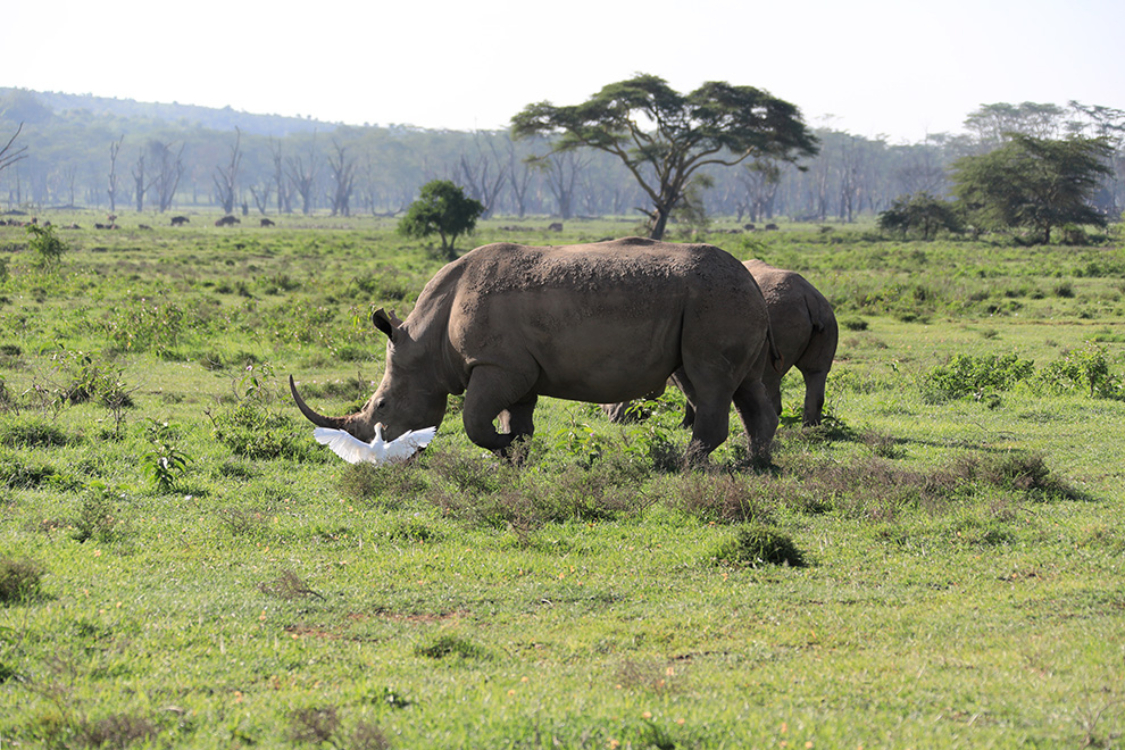 5月13日在肯尼亚纳库鲁湖国家公园拍摄的白犀牛。(图片来源:新华社)