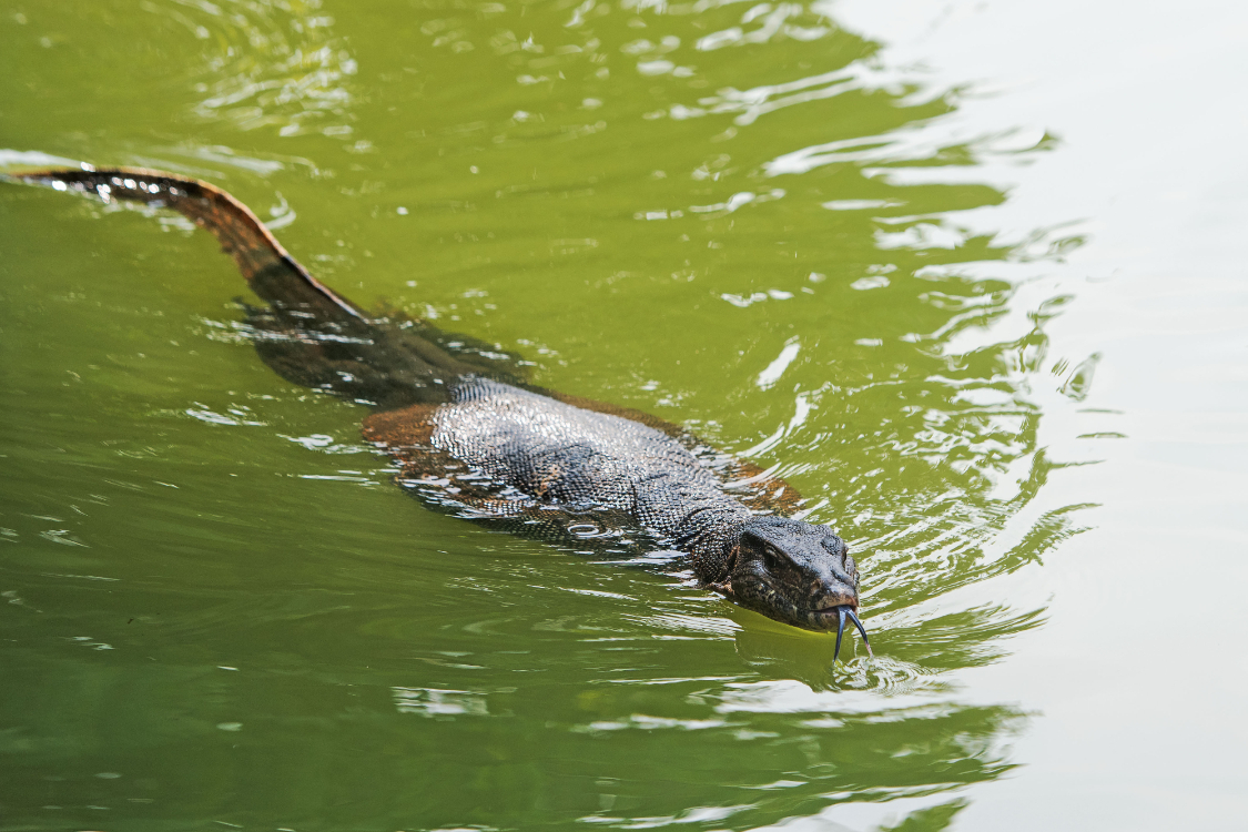 5月21日在新加坡植物园拍摄的马来亚水巨蜥。(图片来源:新华社)