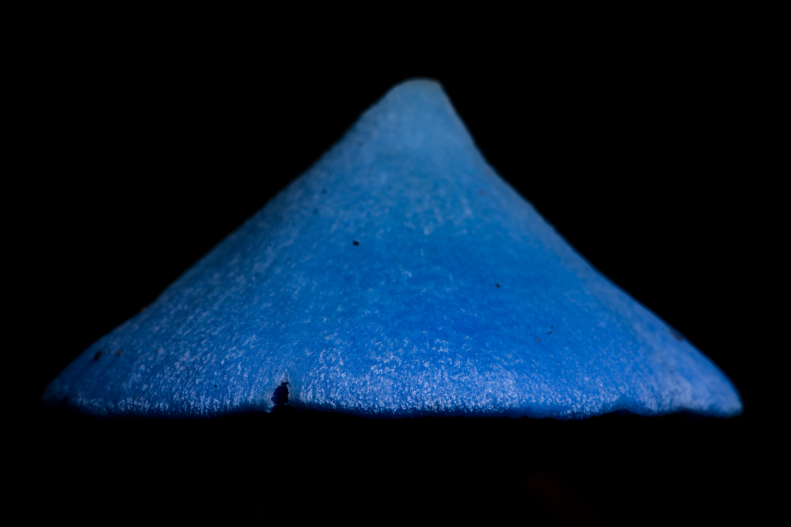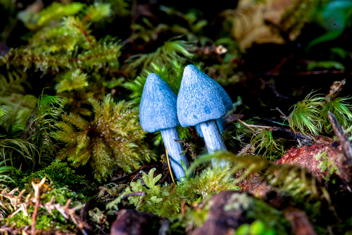 5月1日在新西兰南岛西海岸福克斯温带雨林中拍摄的蓝色霍氏粉褶菌。(图片来源:新华社)