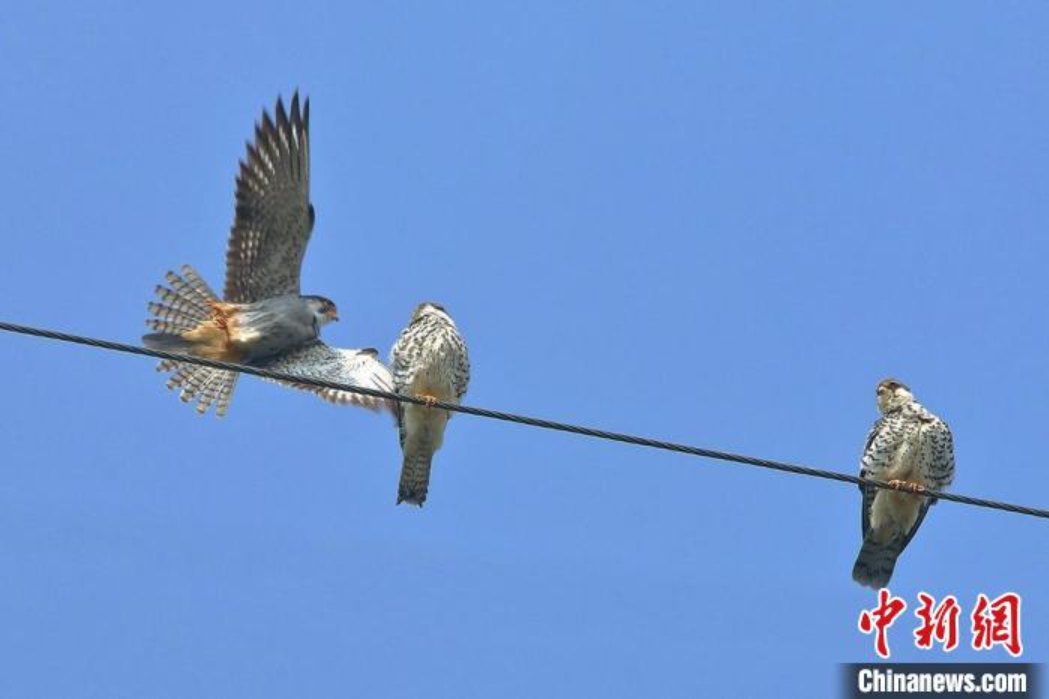 泸溪现迁徙过境的红脚隼。(图片来源:中新网)