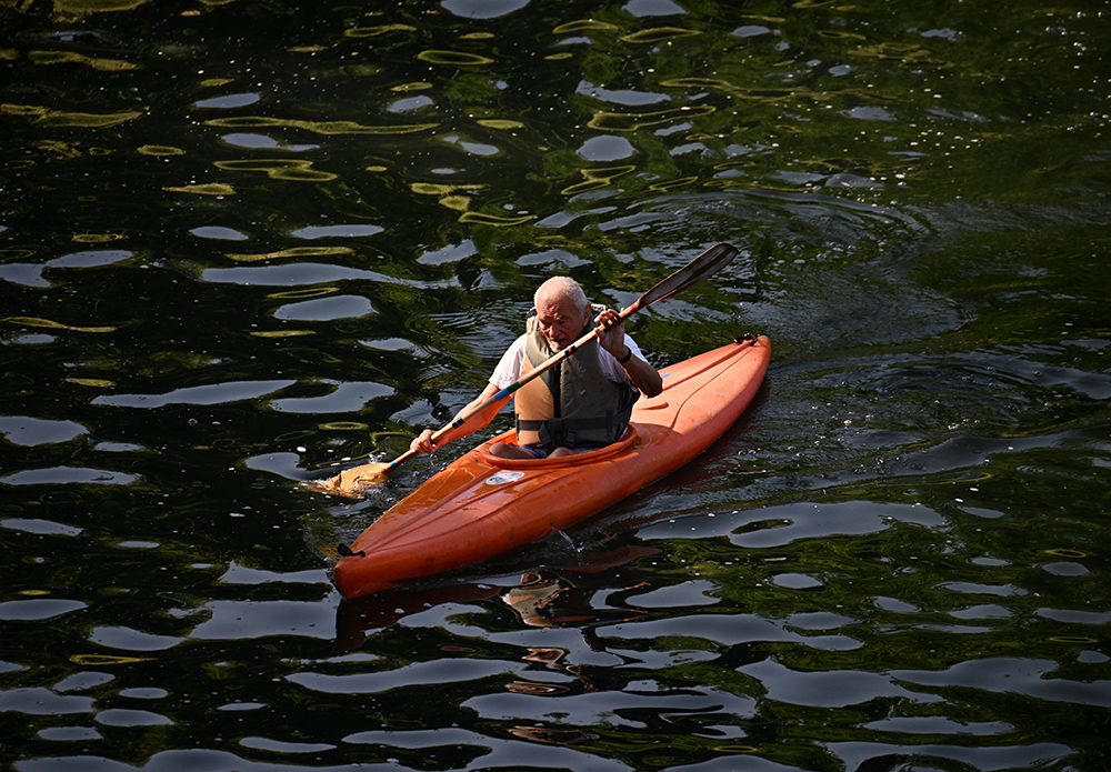 一名男子在意大利都灵划船消暑。(图片来源:新华社)