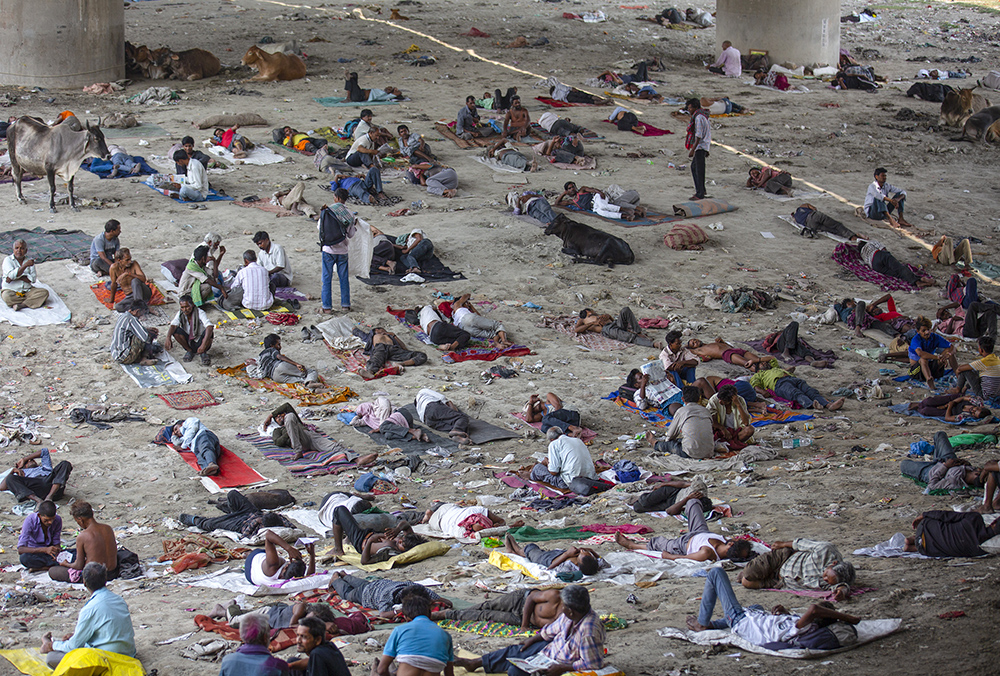 人们在印度新德里一处大桥下避暑。(图片来源:新华社)