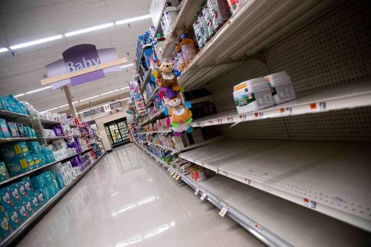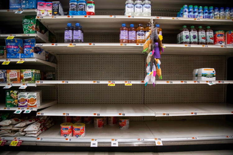 24日,在美国纽约市布鲁克林区,一家超市的婴幼儿奶粉货架出现缺货。(图片来源:新华社)