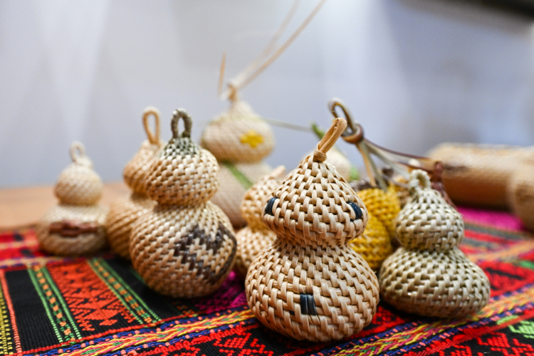 博鳌亚洲论坛2022年年会期间,海南黎族、苗族非物质文化遗产亮相博鳌亚洲论坛主题公园,为中外嘉宾展示海南少数民族文化魅力。图为博鳌亚洲论坛主题公园展出的黎族藤编产品。