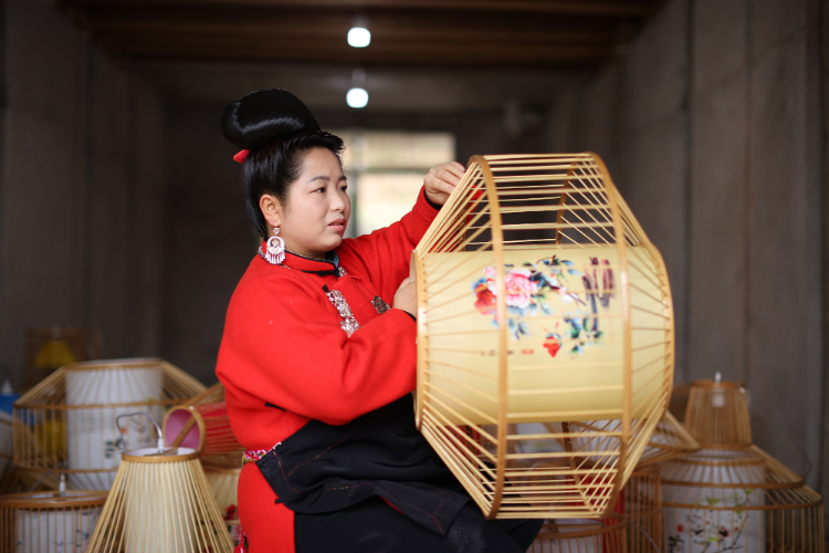 近年来,“鸟笼编织专业村”贵州省丹寨县龙泉镇卡拉村的村民们把竹编工艺从单一的鸟笼产品,转变成以鸟笼造型为基础的灯具、灯笼、家居用品等多样化竹编产品,既保留了传统鸟笼造型特色,又拓展了产品市场。