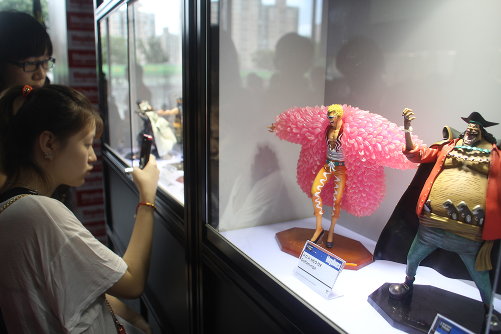 图为上海CCG动漫游戏博览会上,《海贼王》COSPLAY表演者及相关手办玩具模型展览人气十足(资料图片)。(图片来源:中新社)