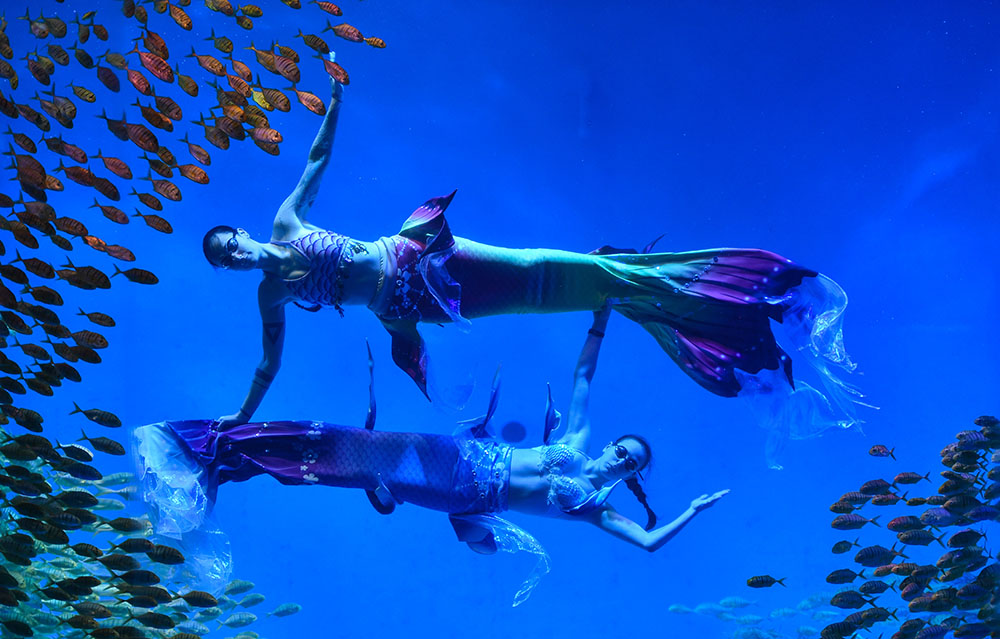 乌克兰演员在合肥海洋世界进行美人鱼表演。(图片来源:新华社)