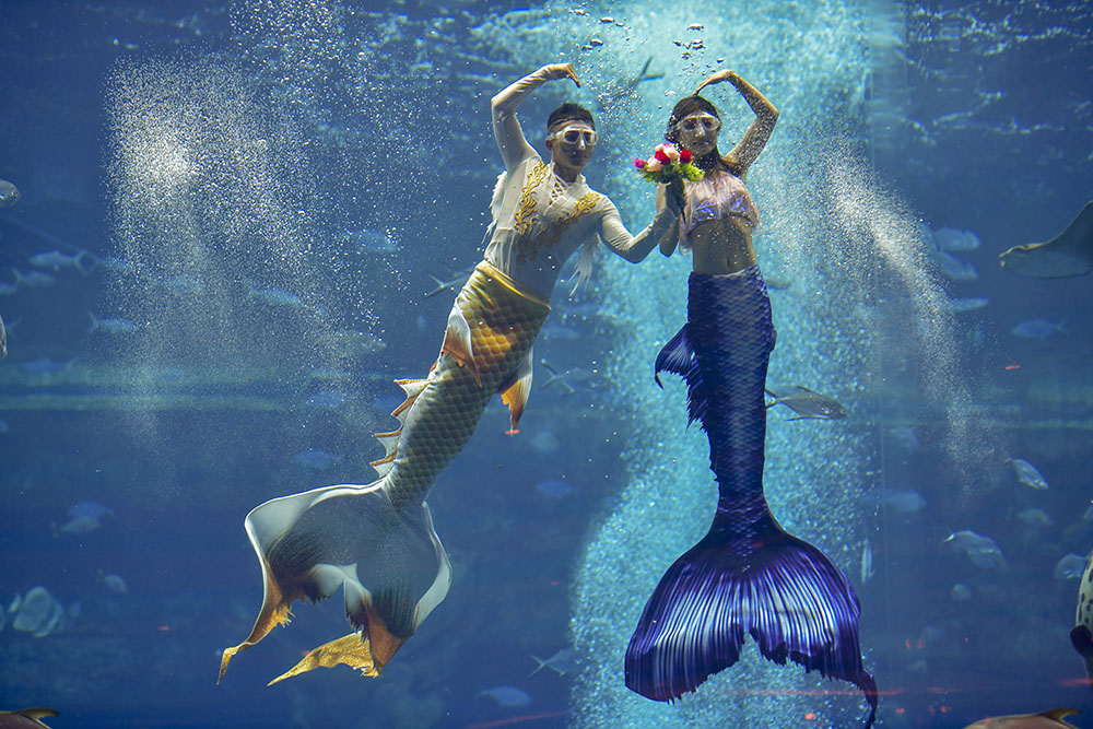 “美人鱼”其实就是一种自由潜水,但利用的是庞大且有时沉重的人工尾巴。在世界各地的海洋里,都有想成为美人鱼和已经“成为”美人鱼的人,在澳大利亚、美国、西班牙等地,为这些人专门开设了美人鱼学校。自2017年以来,这项运动也开始在中国爆炸式增长,如今已成为中国最热门的潮流之一。