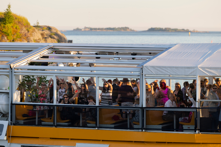 仲夏节是芬兰十分重要的节日之一,也是芬兰公共假日之一,人们通常与亲朋好友共同庆祝。图为24日,在芬兰赫尔辛基,人们在海上巡航庆祝仲夏节。(图片来源:本文图片均综编自新华社)