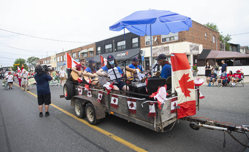 7月1日,在加拿大多伦多,一支乐队参加国庆日游行。(图片来源:新华社)