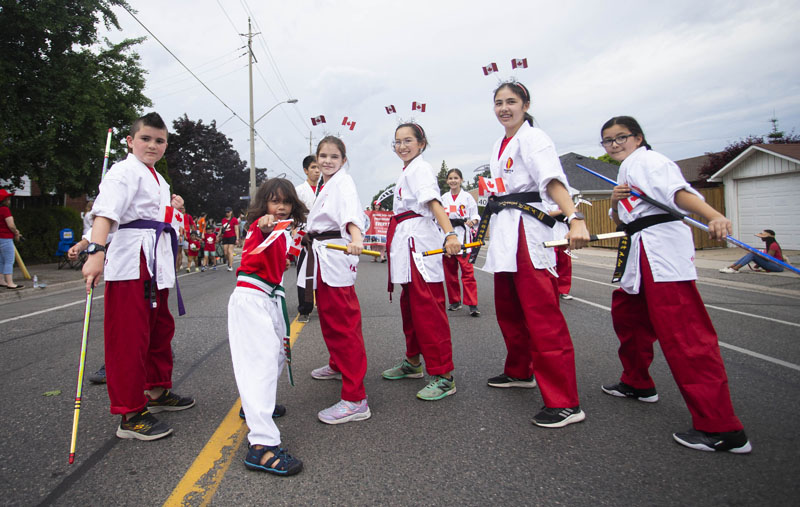 7月1日,在加拿大多伦多,儿童武术队参加国庆日游行。(图片来源:新华社)