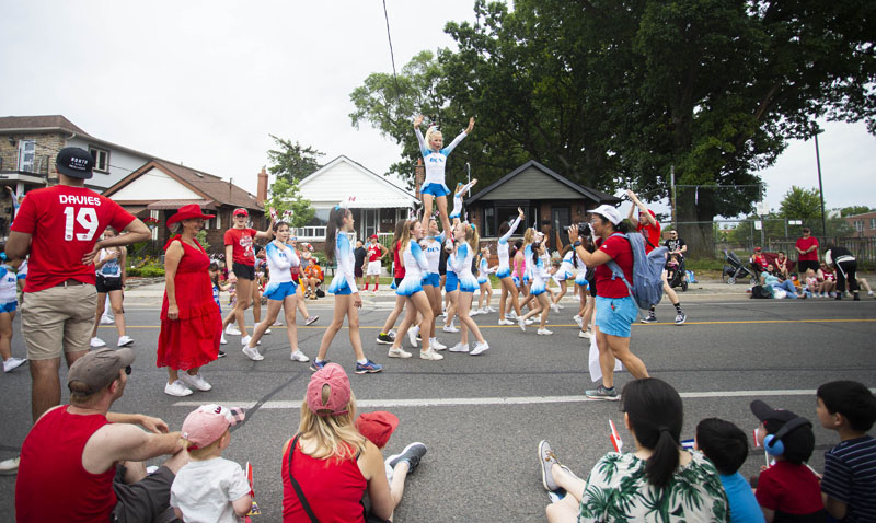 7月1日,在加拿大多伦多,拉拉队参加国庆日游行。(图片来源:新华社)
