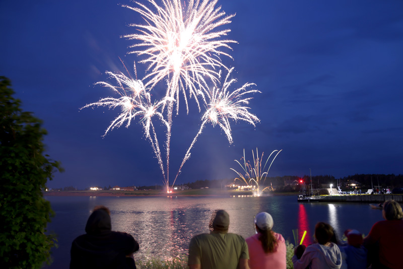 7月1日,加拿大爱德华王子岛北拉斯蒂科,民众在港湾观看加拿大国庆日烟火表演。(图片来源:中新社)