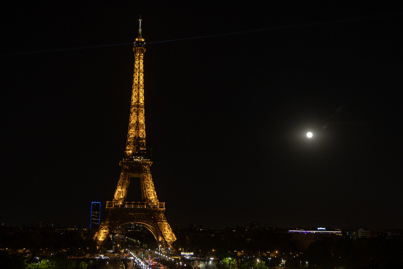 7月13日在法国巴黎拍摄的“超级月亮”。(图片来源:新华社)