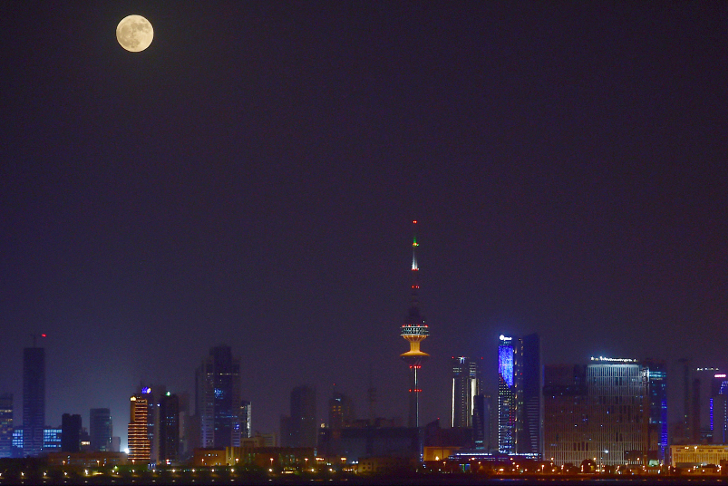 7月14日凌晨在科威特首都科威特城拍摄的“超级月亮”。(图片来源:新华社)