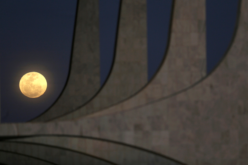 在巴西首都巴西利亚的总统府外拍摄的“超级月亮”。(图片来源:新华社)