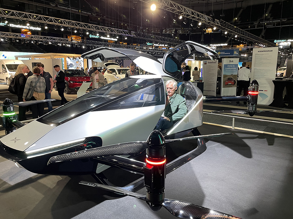 瑞典举办电动车展上的小鹏汇天飞行汽车。(图片来源:新华社)