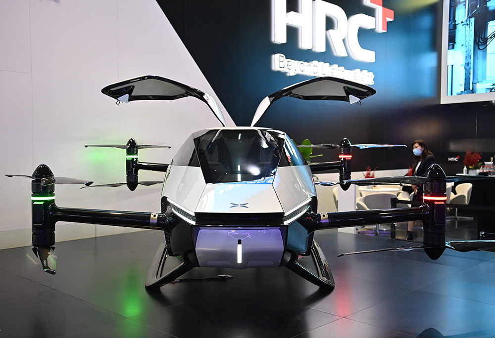 第四届进博会汽车展区拍摄的小鹏飞行汽车。(图片来源:新华社)