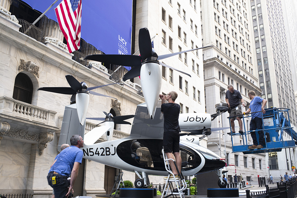 矗立街头的空中出租车吸引着纽约客的目光。(图片来源:中新社)