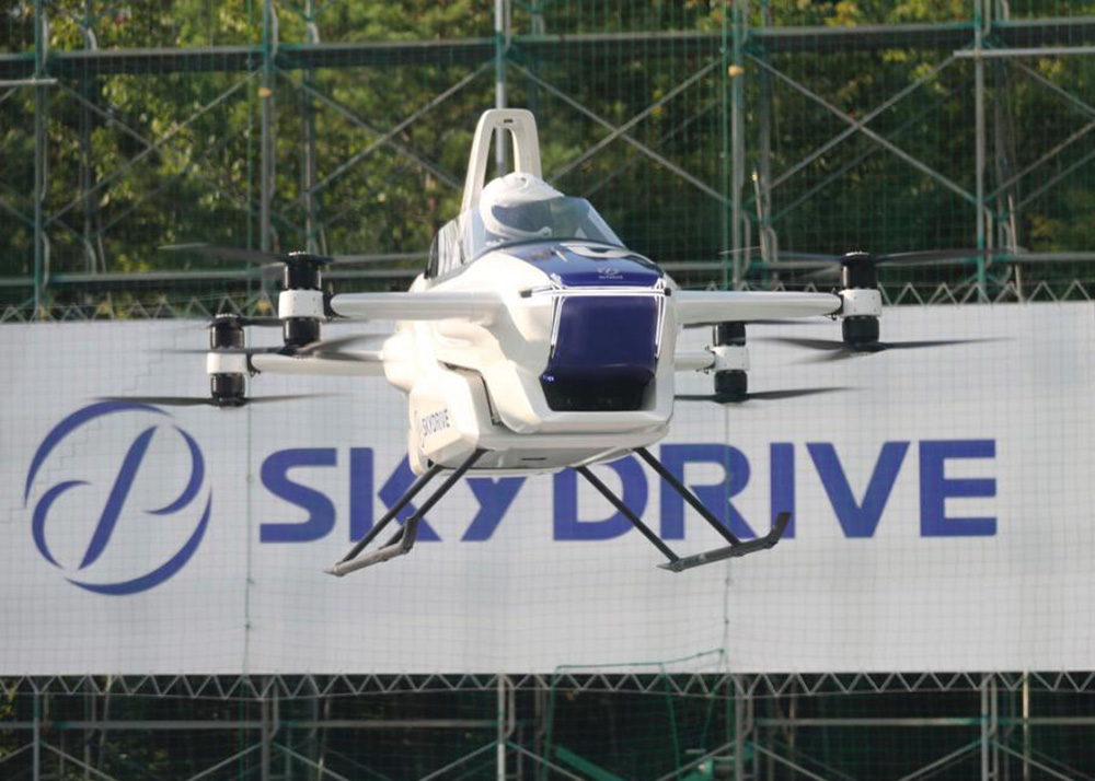 日本爱知县丰田市,SkyDrive公司向媒体展示了一架载人飞行汽车。这一4米长的飞行汽车由开发、制造和销售飞行汽车和货运无人机的SkyDrive Inc开发,目前还处于测试阶段。(图片来源:中新网)