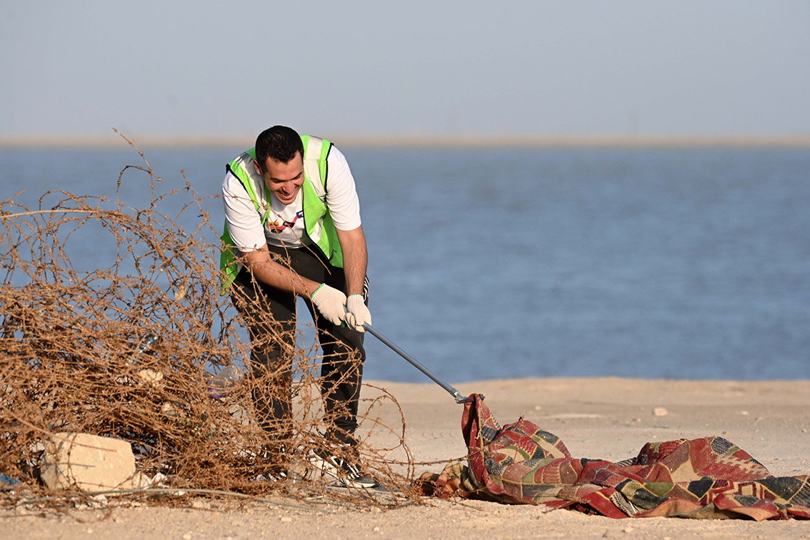 9月17日,志愿者在科威特杰赫拉省苏莱比亚海滩参加清理海滩活动。 (图片来源:本文图片除标注外均自新华社)