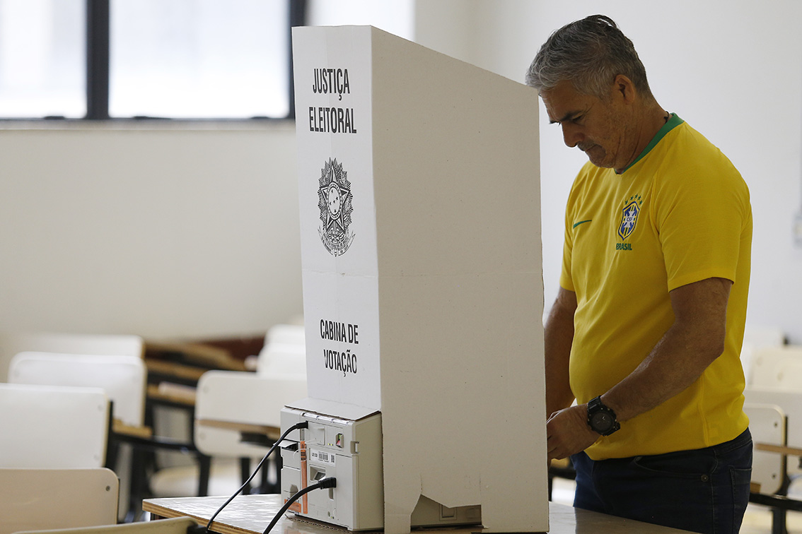 10月2日,选民在巴西首都巴西利亚一处投票站投票。
